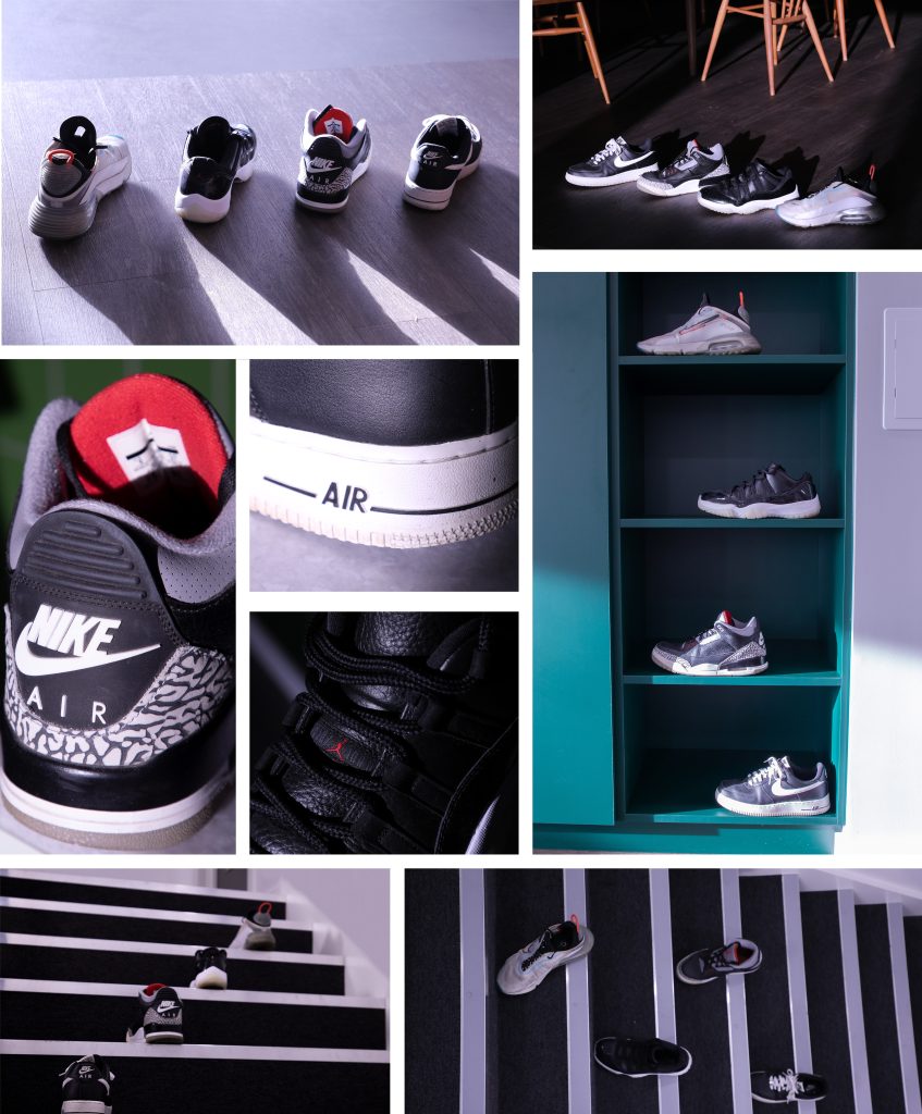 This set of pictures is to fit the theme of “Time” through the timeline of sneaker design. These four sneakers were designed in the 1980s, 1990s, and after 2020. From the changes in these sneakers’ design, we can see the changes in people’s aesthetics of footwear over time.